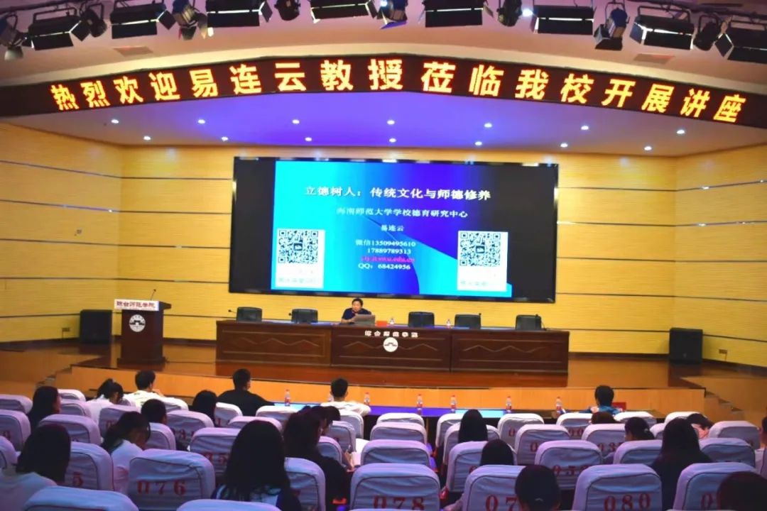 教师教育学院“小学名师讲堂”第二场讲座于11月16日下午在图书馆报告厅举行。本次讲座教师教育学院诚挚邀请海南师范大学教育学院党委书记、博士生导师、海南师范大学学校德育研究中心主任、海南省领军人才—易连云教授,为我院2021级小学教育专业全体学生做题为《立德树人:传统文化与师德修养》的讲座。此次讲座由教师教育学院戴彩虹院长担任主持。