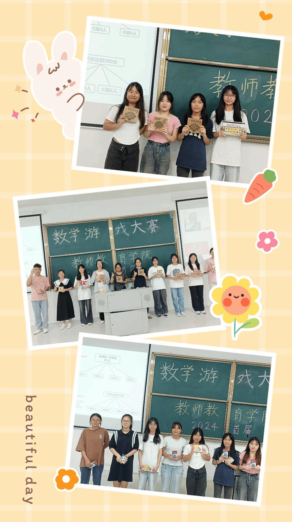 经过一个学期小学数学游戏课程的学习,2023小学教育4班和5班同学于6月12日在文C201举办了一场别开生面的数学游戏大赛。本次大赛既是这门课程的一个教学成果总结,同时也是每一位同学在专业知识学习上的一个新的开始!