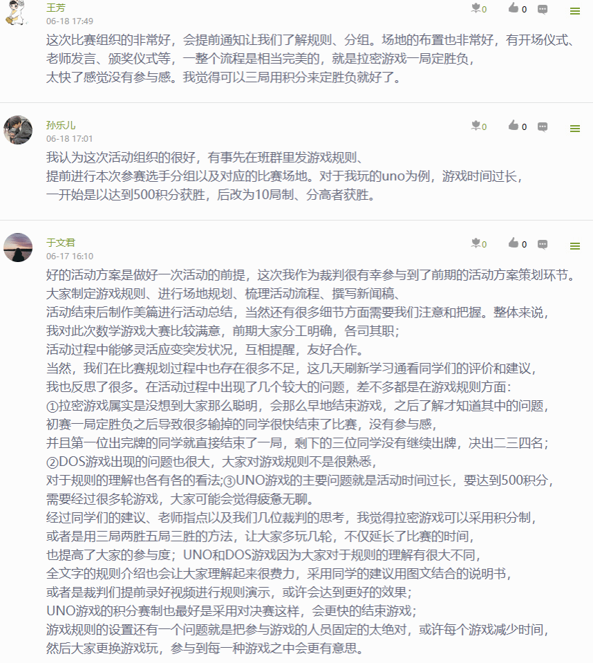 课后,同学们通过学习通的讨论功能,对老师提出的反思和改造游戏进行了热烈的探讨。