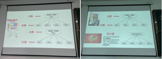 本次比赛一共进行三项游戏的比拼,分别为UNO,DOS和拉密。UNO和DOS的游戏胜利机制为积分制,拉密采取单局制。同学们在游戏中斗智斗勇,展现着自己的速度与智慧。同时裁判在旁边保证着整个游戏的公平公正。