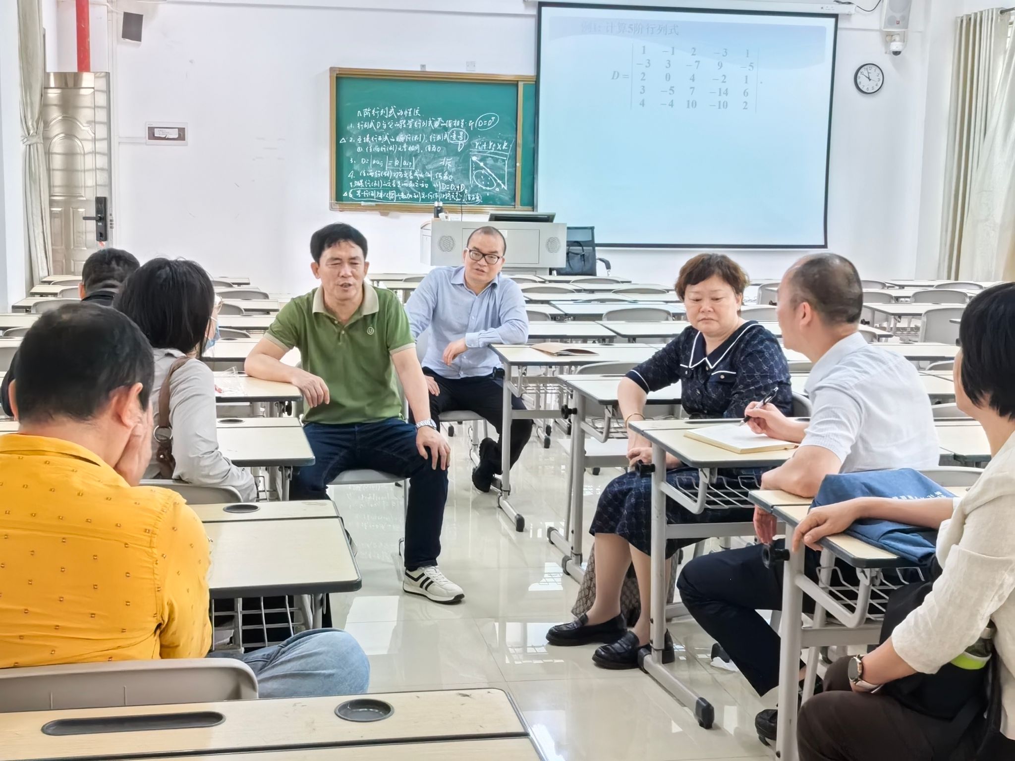 活动中,韩鹏、王子慧两位挂职锻炼教师分别进行公开课展示。韩鹏老师讲授《线性代数》中的“n阶行列式的性质”,聚焦数学学科核心素养培养,通过直观案例导入、逻辑推演与分层问题设计,引导学生理解n阶行列式的实际意义与抽象思维方法。他巧妙结合信息化工具动态演示复杂运算过程,化抽象为具体,展现了严谨的教学逻辑与扎实的专业功底。王子慧老师讲授的课程为《中外教育史》,立足历史脉络梳理与教育思想对比,通过情境还原、文献研读和小组辩论等形式,带领学生探究孔子的教育思想。她以生动案例串联理论,注重启发学生批判性思维,课堂互动热烈,彰显了深厚的学术素养与教学创新能力。