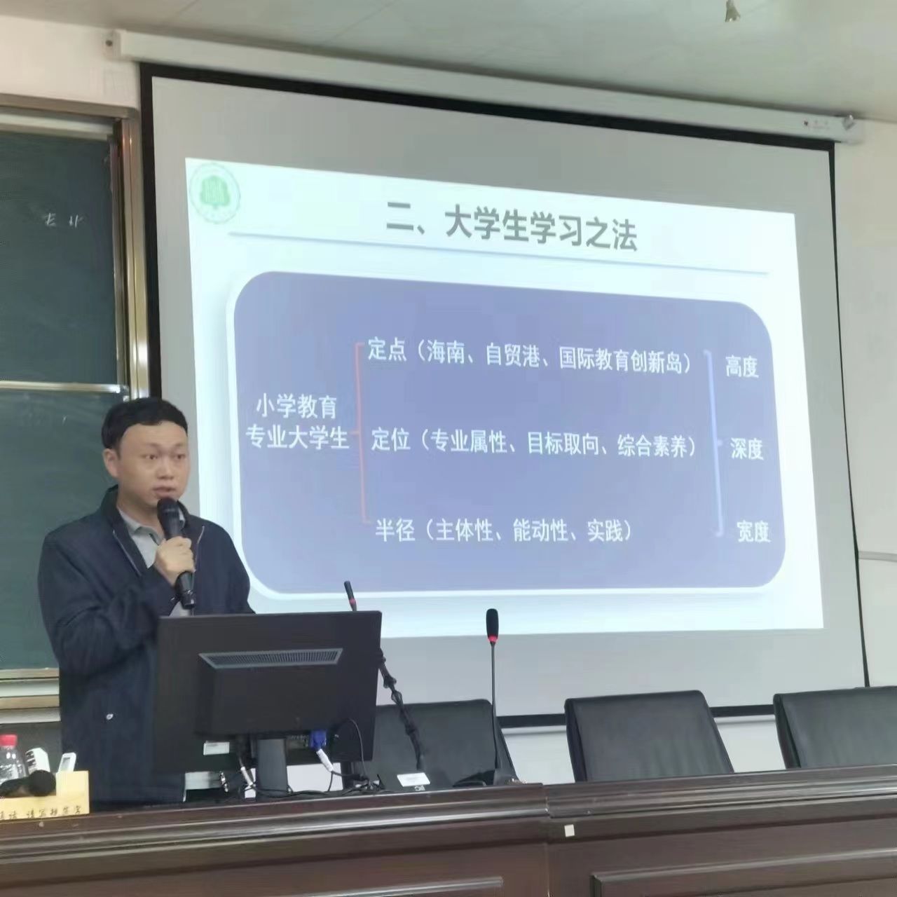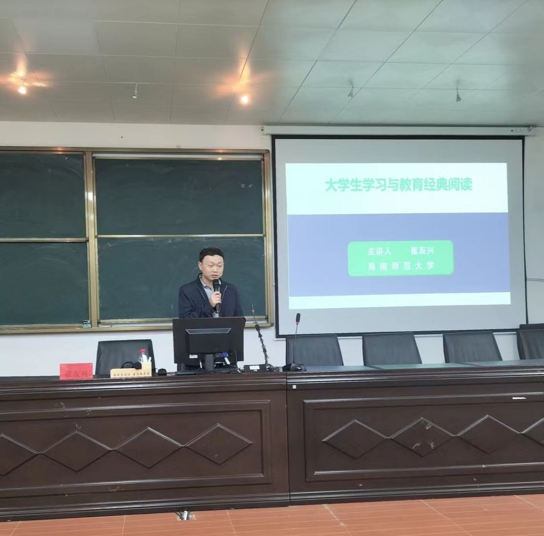 2022年12月6日下午,我院有幸邀请海南师范大学初等教育学院副院长崔友兴博士,在文C202阶梯教室为2022级小学教育专业新生作了一场名为《大学生学习与教育经典阅读》的别开生面的学术讲座。讲座由王河滨副院长主持。
