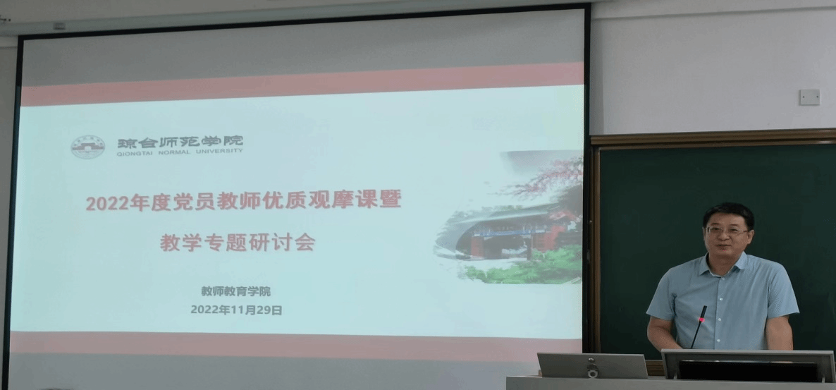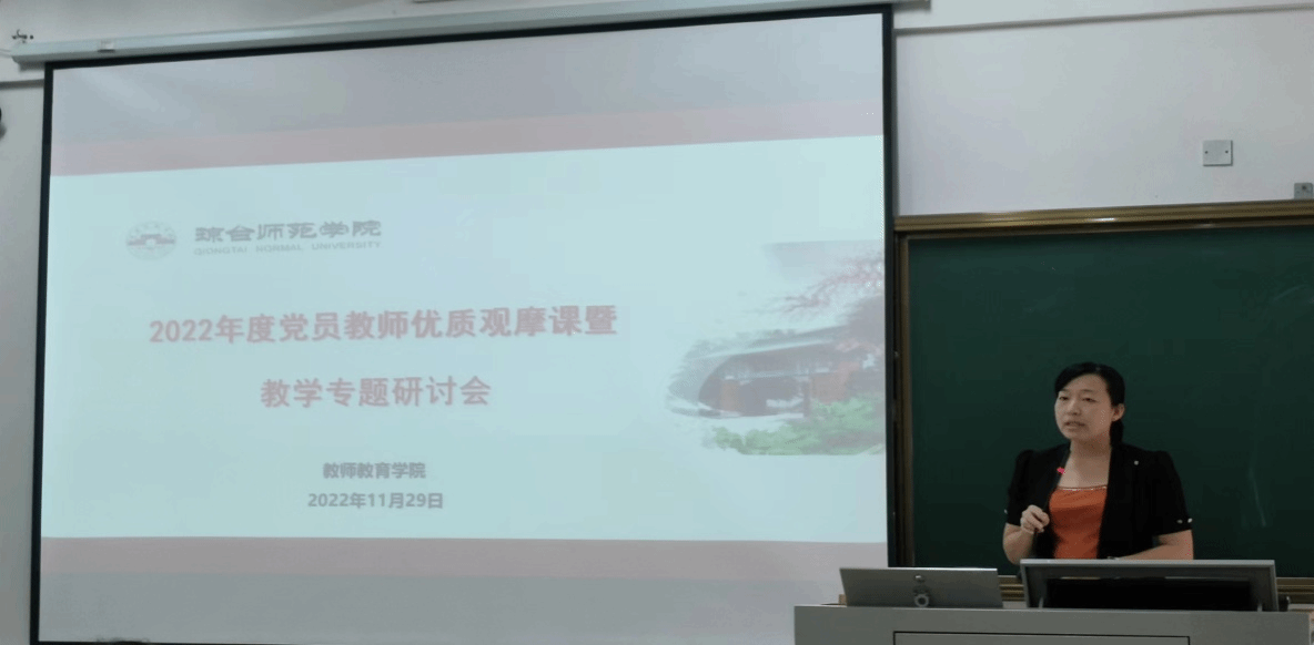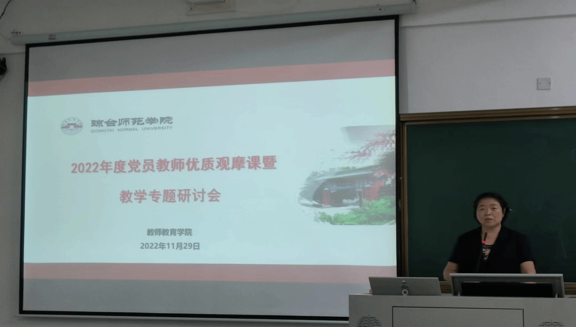 教师教育学院院长戴彩虹、党委书记王世翔及副院长王萍、李文婷、王河滨参与活动并进行评课。活动由副院长王河滨主持,副院长李文婷及裴锦花老师进行了党员优质课教学展示,学院全体教师参与听课、交流。