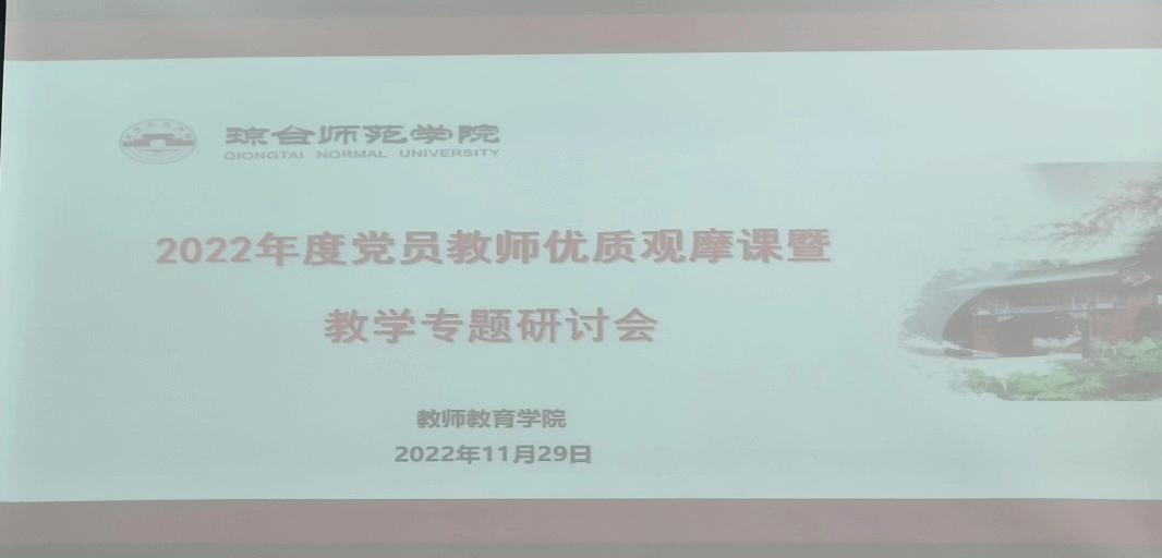 为深化教育教学改革,全面提高课堂教学质量和教学效率,落实学校“以评促建、以评促改、以评促管、评建结合、重在建设”的评建方针,进一步提高课堂教学的有效性,依照《琼台师范学院“磨课”教研活动实施方案》(琼台教务〔2022)135号)文件精神,教师教育学院于2022年11月29日下午2:30在实D202组织开展了第三阶段的“磨课”教研活动。