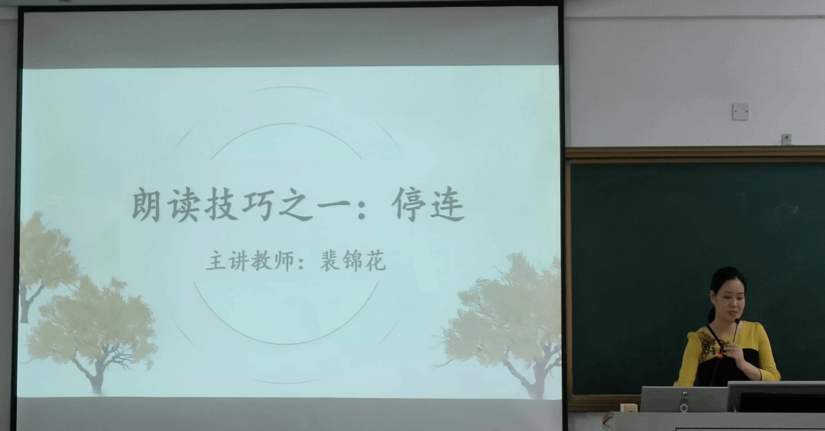 裴锦花老师的《朗读技巧之一:停连》着眼于朗读知识、技能培养,讲练结合,注重学生的实践应用,展现了专业教师的扎实功底与风采。