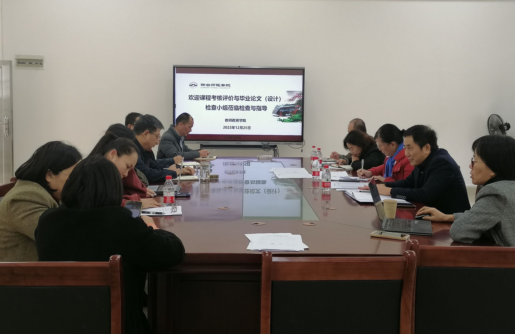 为推动本科教学工作评估走深走实,12月25日下午14:30,琼台师范学院副校长银海强带领学校检查小组至我院检查课程考核及毕业论文材料。检查小组专家包括音乐学院副院长庄小清、教学质量监测与评估中心副主任覃晓辉、科长张梦影、音乐教育系主任马成、音乐学院教学秘书程超。参与本次检查工作的我院领导与老师有王安兴副校长、杜益文书记、王河滨副院长、王彦飞副院长、小教系系主任潘婷玉,以及没课的老师们。