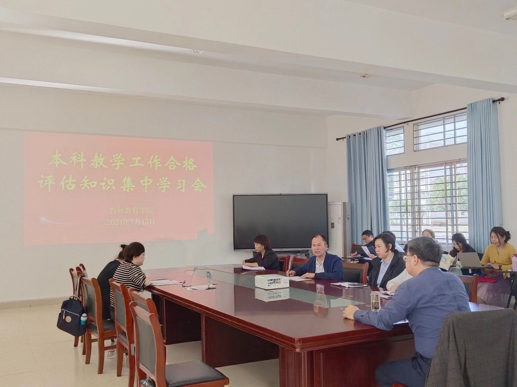 营造迎评促建的良好氛围,加深教师对评估指标内涵及相关知识的理解,扎实推进学院的本科教学工作合格评估准备工作。2024年1月15日下午教师教育学院A107举行本科教学工作合格评估知识集中学习会,教师教育学院副院长王河滨主持会议,王安兴副校长及学院全体教职工参加会议。