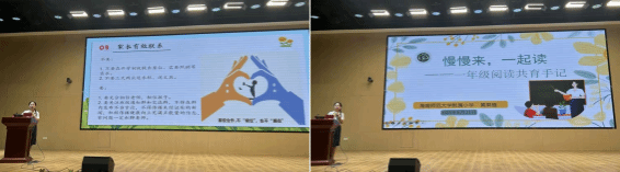 紧接着,梁校长借助一份幼小衔接主题班会PPT,从“幼小分水岭”“学生习惯养成”“家校有效沟通”三个维度,引导同学们进一步认知班主任的角色定位与核心工作。她不仅结合自身丰富的教育管理经历,还以幼小衔接阅读活动为具体实例,为同学们系统总结了班主任与语文教师工作中的诸多经验与启示。