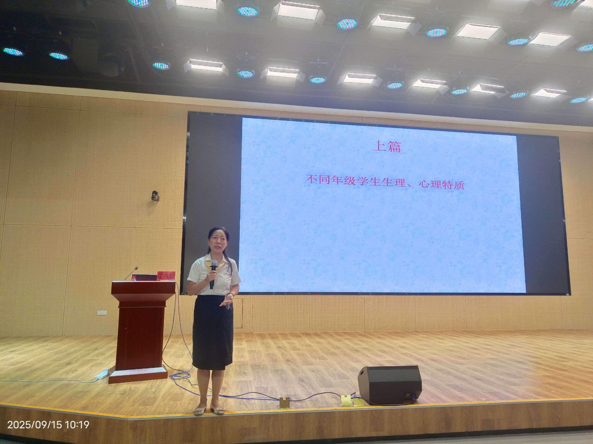 讲座下篇,梁校长围绕“如何做一名让学生喜欢的班主任”展开分享,具体从“教学活动中的班主任角色”“班主任的思考与实践”“班主任特质对学生适应性的影响”“学生喜爱的班主任特质分析”“如何培养班主任的积极特质”五个方面深入阐述。其中,她重点点明“上好课是最大的师德”这一关键要义,强调班主任需以亲和态度与专业能力赢得学生信赖;面对学生犯错时,要以包容心态接纳,再循序渐进给予引导,陪伴学生共同成长。