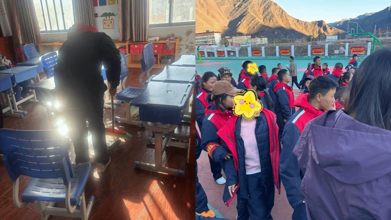 昌都市特殊教育学校的实习生用陪伴传递温暖,在“集体看电影”活动时,实习生协助维持秩序,耐心安抚兴奋的孩子;卫生整理时间,实习生指导学生整理教室卫生,通过趣味奖励,让劳动教育融于生活。