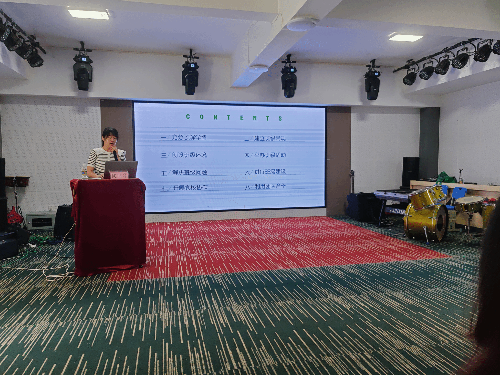 侯丽华老师分别从充分了解学情、建立班级常规、创设班级环境、举办班级活动、解决班级问题、进行班级建设、开展家校协作、利用团队合作这八个方面进行培训。