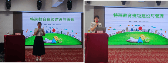 上午由海南(海口)特殊教育学校的侯丽华老师为大家带来特殊教育班级与建设的培训课程。