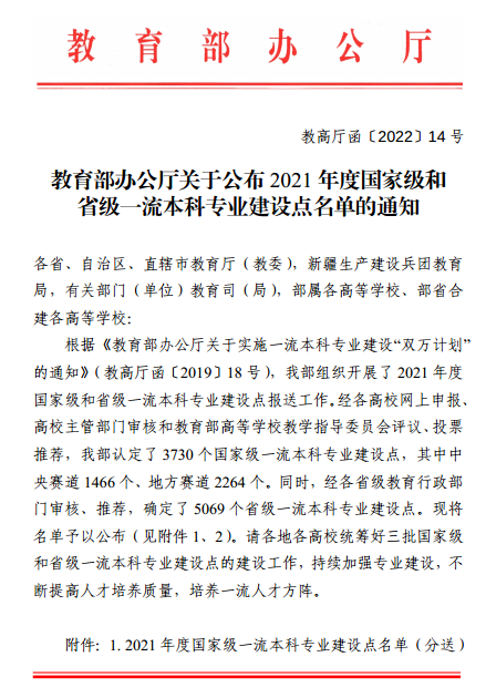 近日,教育部办公厅公布了2021年度国家级和省级一流本科专业建设点,我院小学教育专业入选省级一流本科专业建设点,这是我院在专业建设上取得的突破性成绩。