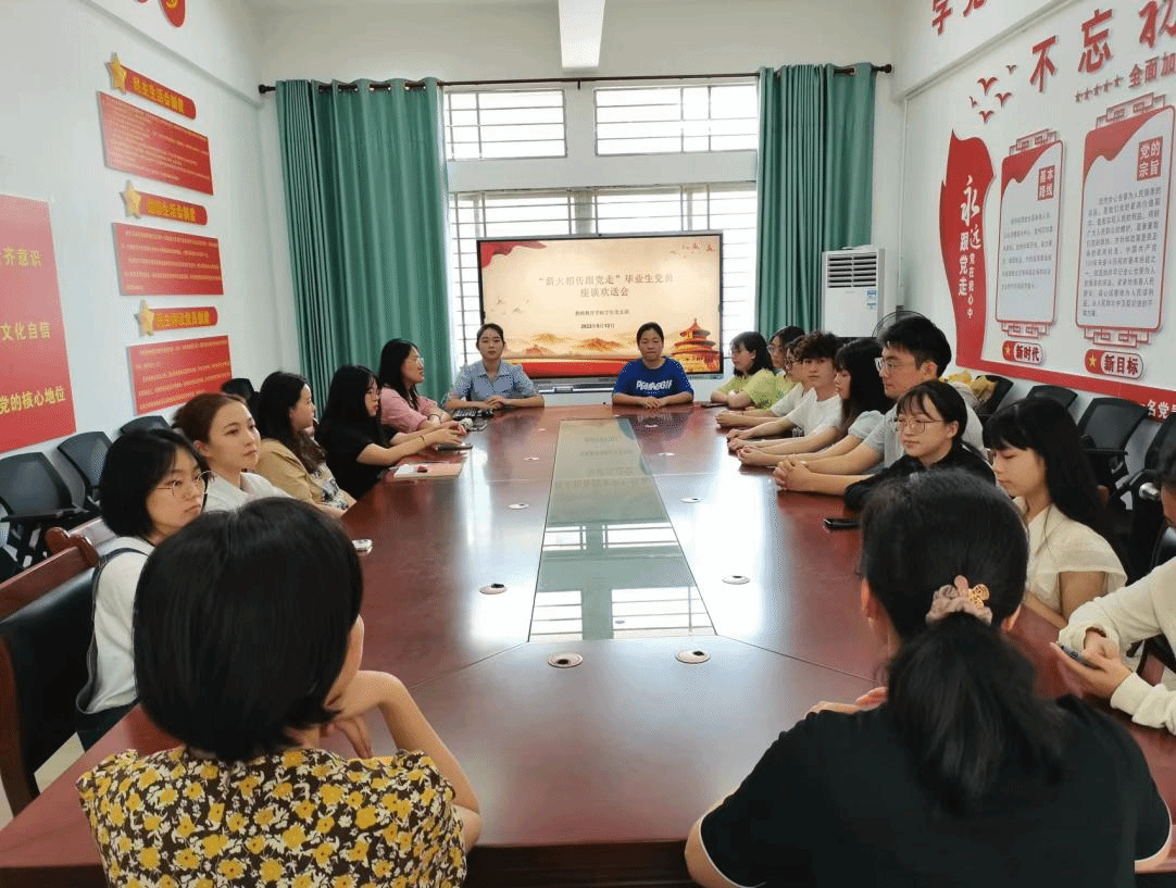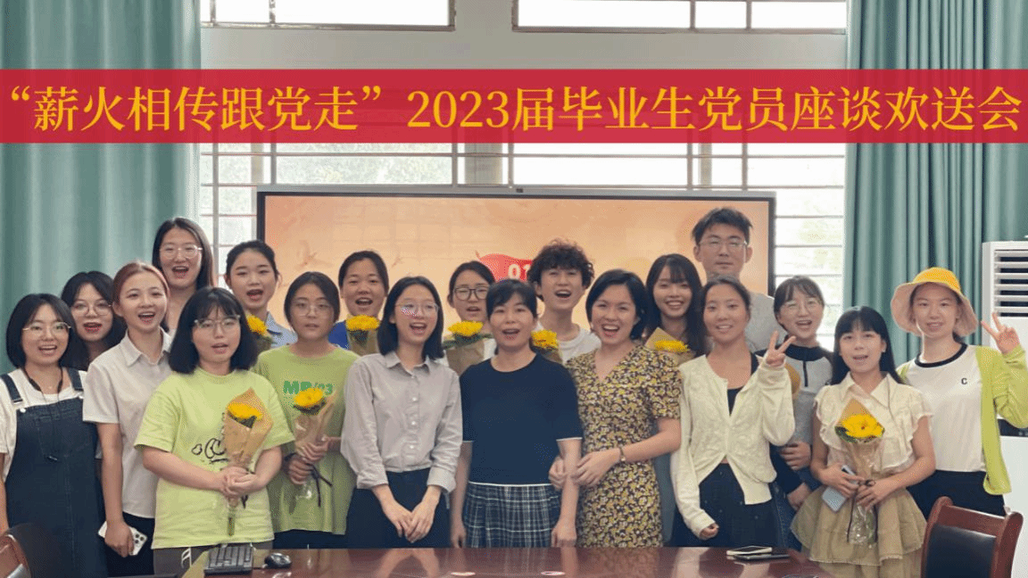 为深入学习宣传贯彻党的二十大精神,扎实抓好学习贯彻习近平新时代中国特色社会主义思想主题教育,传递组织对毕业生党员的祝福与关怀,更好地进行支部建设的传承和交接,2023年5月12日中午,教师教育学院学生党支部在文A104开展“薪火相传跟党走”2023届毕业生党员欢送会,会议由柯维中老师主持,杜益文书记、吴莲老师、安欣老师和支部全体党员参与会议。