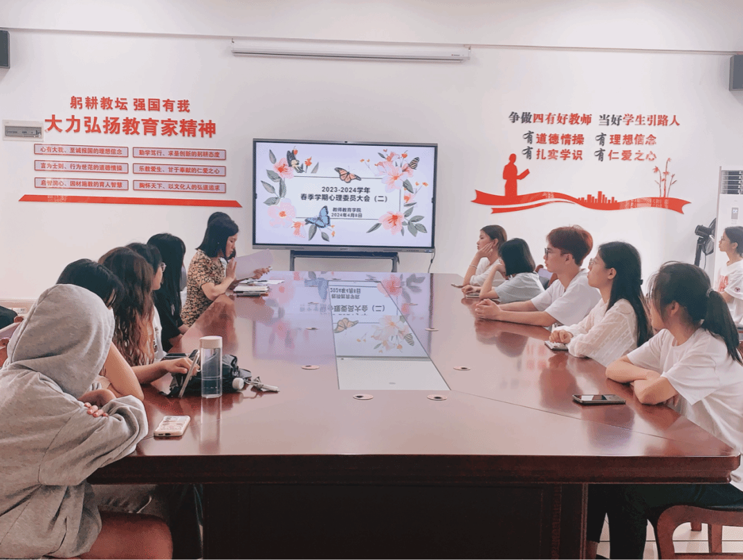 为了进一步推进我院学生心理健康教育工作,有效提升心理委员的工作能力及水平,教师教育学院于2024年4月8日下午在文A107召开了2023-2024学年春季学期心理委员大会。