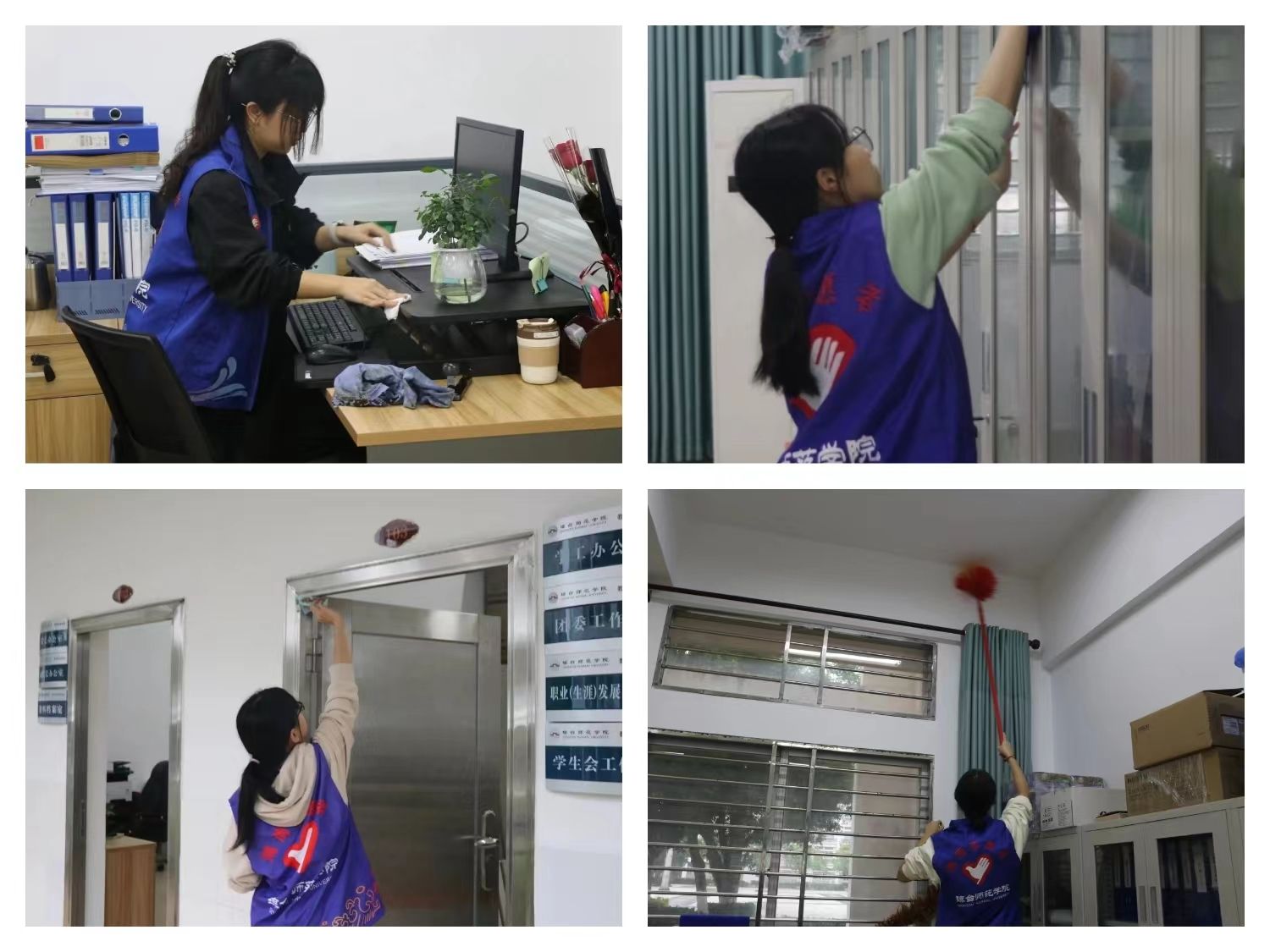 首先,为所有参加这次打扫办公室的同学点个赞。大学阶段是人生中一个重要的里程碑,同学们在努力学习书本知识的同时,更应该积极参与劳动服务实践。
