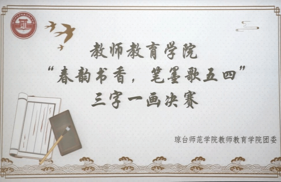 教师教育学院于2024年6月4日15:00,在文科楼C栋403书法教室和402书法教室举行“春韵书香,笔墨歌五四”三字一画决赛。