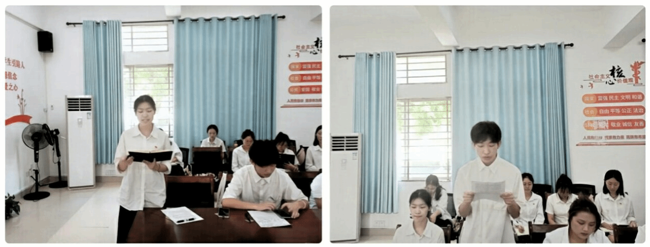 由杨景茹等6位同志依次进行发言,各位同志非常感谢入党介绍人和与会党员对自己提出的宝贵建议,并表示在未来会不断改正缺点、弥补不足,以更饱满的精神状态对待学习和工作,时刻保持谦虚的心态,力争在思想、学习、实践、生活等方面发挥良好的模范先锋作用,不辜负党组织的信任。
