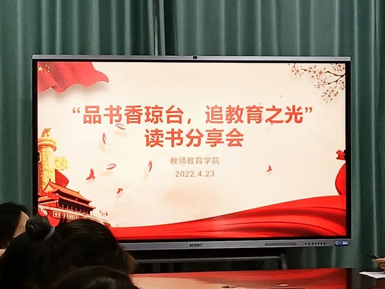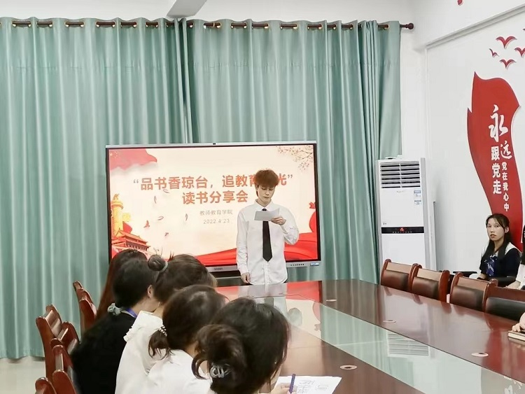 2022年4月23日16:00,由教师教育学院主办的琼台师范学院“品琼台书香,追教育之光”读书分享比赛在文A104如期举行,并通过网络直播平台对本次比赛进行全程直播。