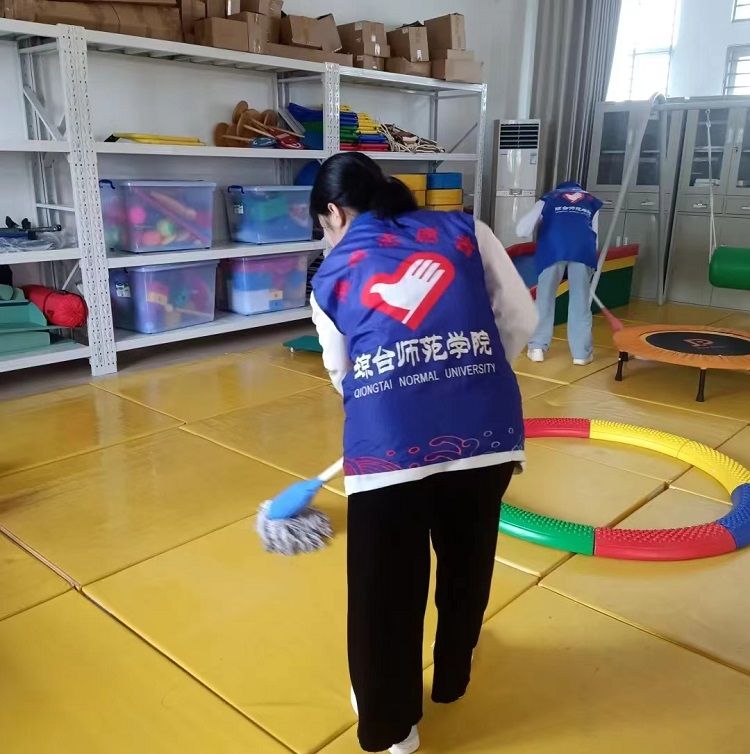 新学期来临,为保证课程的顺利开展,教师教育学院团委青年志愿者协会帮助老师整理和布置教学场地,力求将干净整洁的教室展现在同学们面前。2023年2月21日,教师教育学院团委青年志愿者协会开展了“清洁感统实训室”志愿活动。
