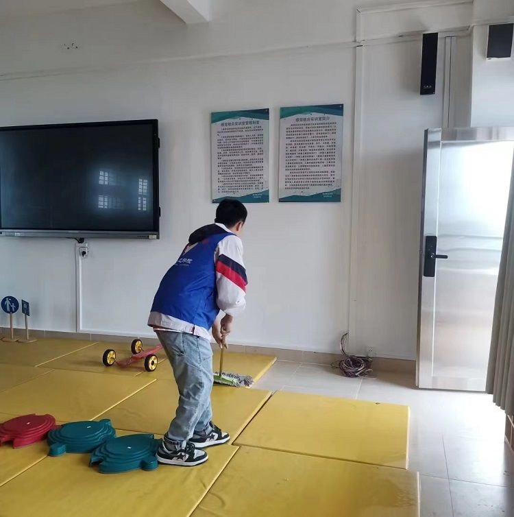 通过本次“清洁感统实训室”志愿活动,志愿者们为建设干净美丽的校园贡献自己的一份力量,同时在清洁劳动过程中潜移默化地培养了爱干净讲卫生的好习惯,还深刻学习到了奉献、友爱、互助、进步的志愿服务精神。