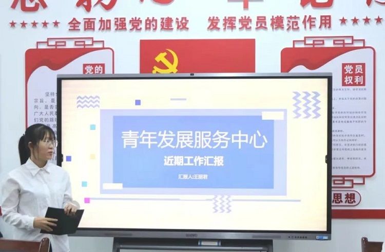 团委各部门代表依次采用ppt展示与演讲相结合的方式对近期部门工作进行汇报与总结。每位代表都对本部门的工作进行了主要的概述和反思,并针对新干事在这段时间以来工作中的不足提出解决办法,对后续的工作进行简要规划和展望。