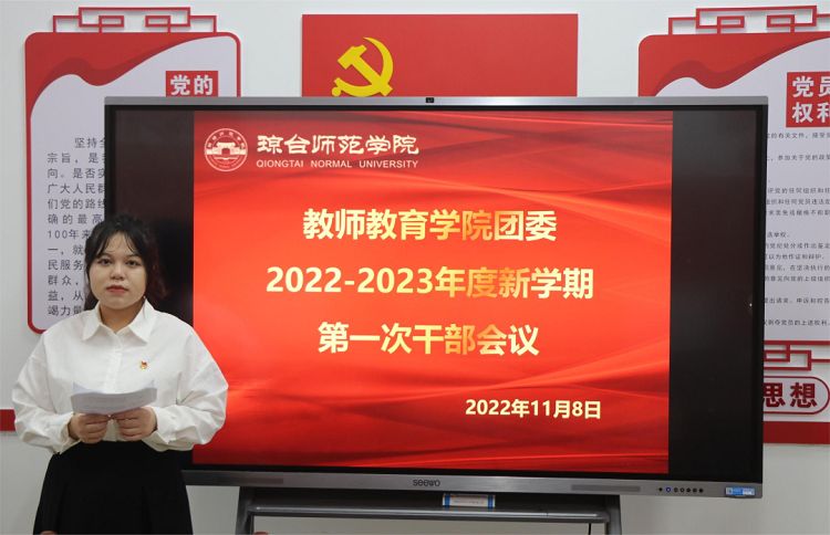 时光荏苒,白驹过隙。眨眼间,学期已过半旬,带着希望与憧憬,团委大家庭终于迎来了相见。为了在新的学期中进一步地促进团委工作的开展,增强各部门干部的工作责任意识和更好地完善培新工作,教师教育学院于2022年11月8日15:00在文A104开展新学期团委干部第一次例会。教师教育学院学工办负责人吴莲老师、团委书记安欣老师、李腾飞老师以及团委干部参与此次会议。团委学生会主席张诗怡担任此次会议主持人。