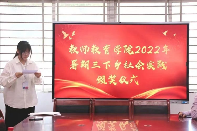 为深入学习宣传贯彻习近平新时代中国特色社会主义思想,贯彻落实习近平总书记关于青年工作的重要思想,在社会课堂中受教育、长才干、作贡献,努力成为担当民族复兴大任的时代新人,我院于2023年3月24日在文科楼A栋104举行了暑期“三下乡“社会实践活动颁奖仪式。教师教育学院辅导员柯维中老师、李腾飞老师、获奖人员参与此次颁奖仪式。颁奖仪式由黄子倩同学担任主持。