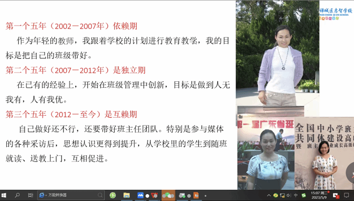接着,马善波老师介绍了禅城区启智学校的WSCD德育管理模式。同时,她从日常管理、班风建设、个案研究、班级发展规划等方面详细地向同学们介绍了在管理班级与日常工作的过程中面对各种突发事件应该具备的能力,并提出了相应的应对措施与建议。