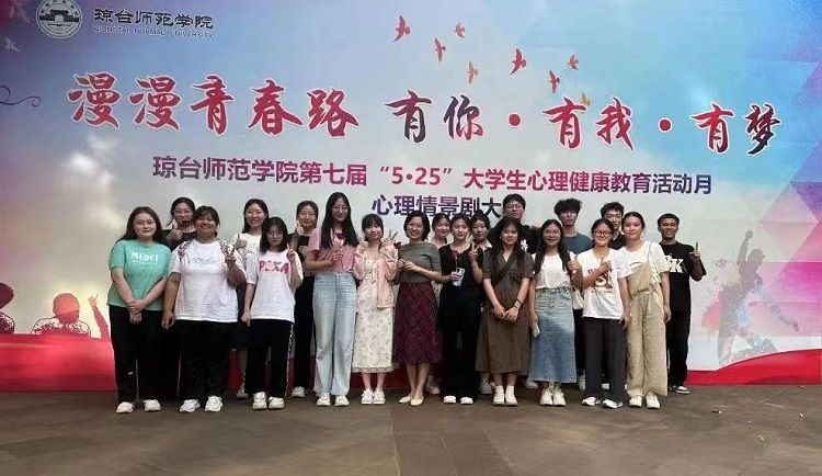 琼台师范学院第七届大学生心理情景剧于5月25日在图书馆报告厅举办。教师教育学院结合“漫漫青春路 有你·有我·有梦”为主题,原创心理情景剧《青春不沉默 “护苗”进校园》。在吴莲老师的指导下,参与此次心理情景剧的策划组和演员共24人,通过全体成员的辛勤付出和努力,此次心理情景剧取得了一等奖的好成绩!
