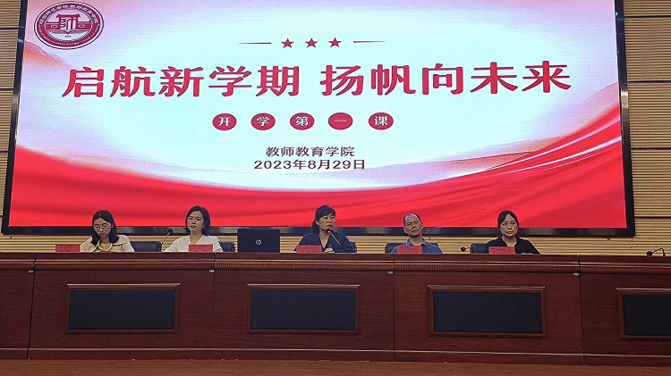 2023年8月29日下午,我院在图书馆报告厅开展“启航新学期,扬帆向未来”开学第一课主题教育活动,学院党委书记杜益文、副院长王河滨、教务办孙湘华老师、全体辅导员出席活动,吴莲老师主持,2022级全体学生参与会议。