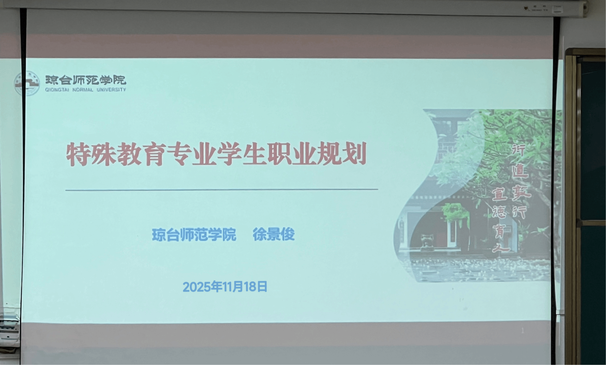 2025年11月18日下午,特殊教育专业邀请教师教育学院特聘院长徐景俊教授在世范楼202举办“特殊教育专业学生职业规划”专题讲座,围绕专业认知、职业路径与个人发展等主题展开,讲座由桑汉斌主持,2025级全体新生参加。