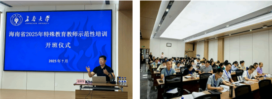 为深入贯彻党的二十大报告关于“强化特殊教育普惠发展”的重要精神,落实《“十四五”特殊教育发展提升行动计划》,全面推进海南省特殊教育师资队伍高质量发展,2025年7月28日,海南省特殊教育教师示范性培训项目在长春大学顺利启动。本次培训由琼台师范学院教师教育学院统筹组织并委派教师全程带队,来自海南省特殊教育学校的40名一线管理者及骨干教师齐聚北国春城,以“融合教育高质量发展下特殊教育教师专业能力提升”为主题,开启为期一周的专业研修之旅。