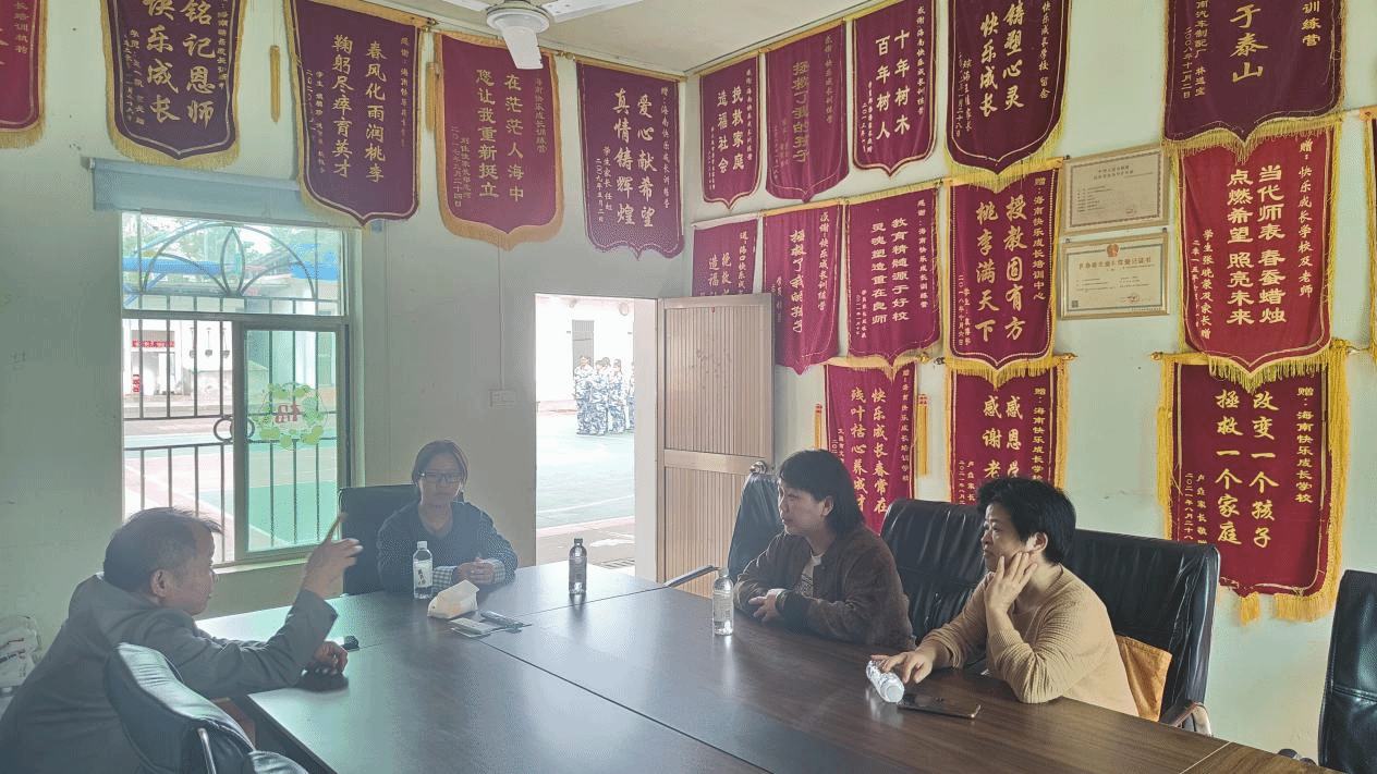 海南快乐成长培训学校校长及心理主任对教师教育学院一行的到访表示热烈欢迎。他们详细介绍了学校的办学理念、学生概况、主要干预模式以及日常心理工作的开展情况。双方就实践基地的具体合作模式、学生实习安排、可能开展的教研合作及校园支持活动等议题进行了务实且富有建设性的讨论。