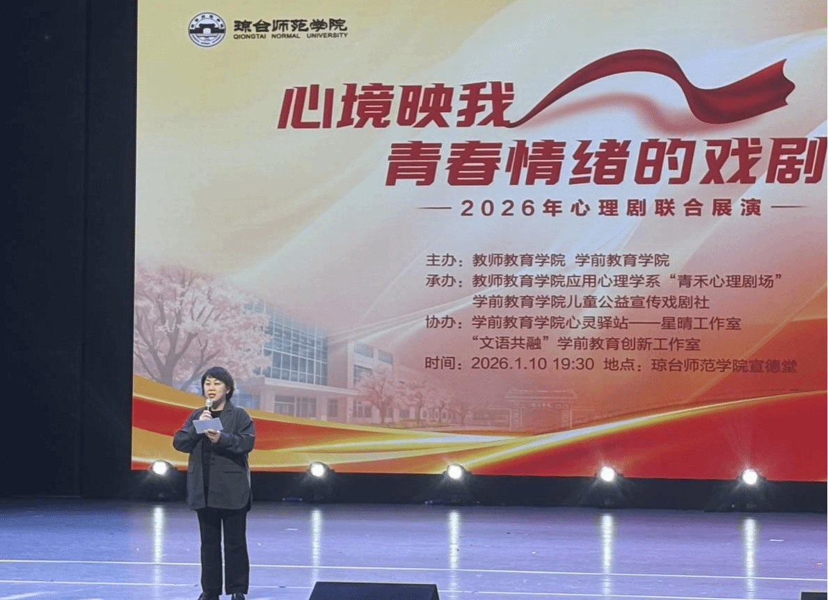 2026年1月10日晚,由教师教育学院和学前教育学院共同主办的“心镜映我 青春情绪的戏剧表达”系列心理剧展演于我校桂林洋校区宣德堂成功完成汇演。本次汇演作品由应用心理学专业与学前教育专业学生跨学科合作创作并排演,共呈现六部聚焦当代大学生普遍性发展议题的心理剧。演出以戏剧艺术为载体,将抽象的情绪困扰与心理困境进行具象化舞台呈现。