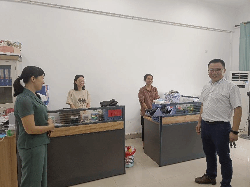 王华副校长传达了解党委对学院发展的关心,他非常关注学院的建设,并对如何改善场地条件进而提升教学质量和办公效率,更好地为师生服务,实现专业高质量发展等提供了详尽的意见和建议。在心理实训室,他要求实训室建设要立足教学实际,满足师生的需求,切实便利教师开展教学、提升学生学习效率。在党员活动室,他对活动室的文化建设及利用率表示肯定。在学生工作办公室,他亲切与新进辅导员交谈,询问他们是否适应工作,并分享自己学生管理工作经历与经验,对办公室的规划布局提出了建议,例如规划学生活动区域、丰富办公室文化与内涵、充分发挥服务育人、文化育人功能等。在行政办公室,王华副校长对干净整洁有序布置表示肯定,并提出要进一步提升办公室场地利用率。在心理咨询室、教师工作室等建设现场,他特别强调要注意安全施工以及合理布局。