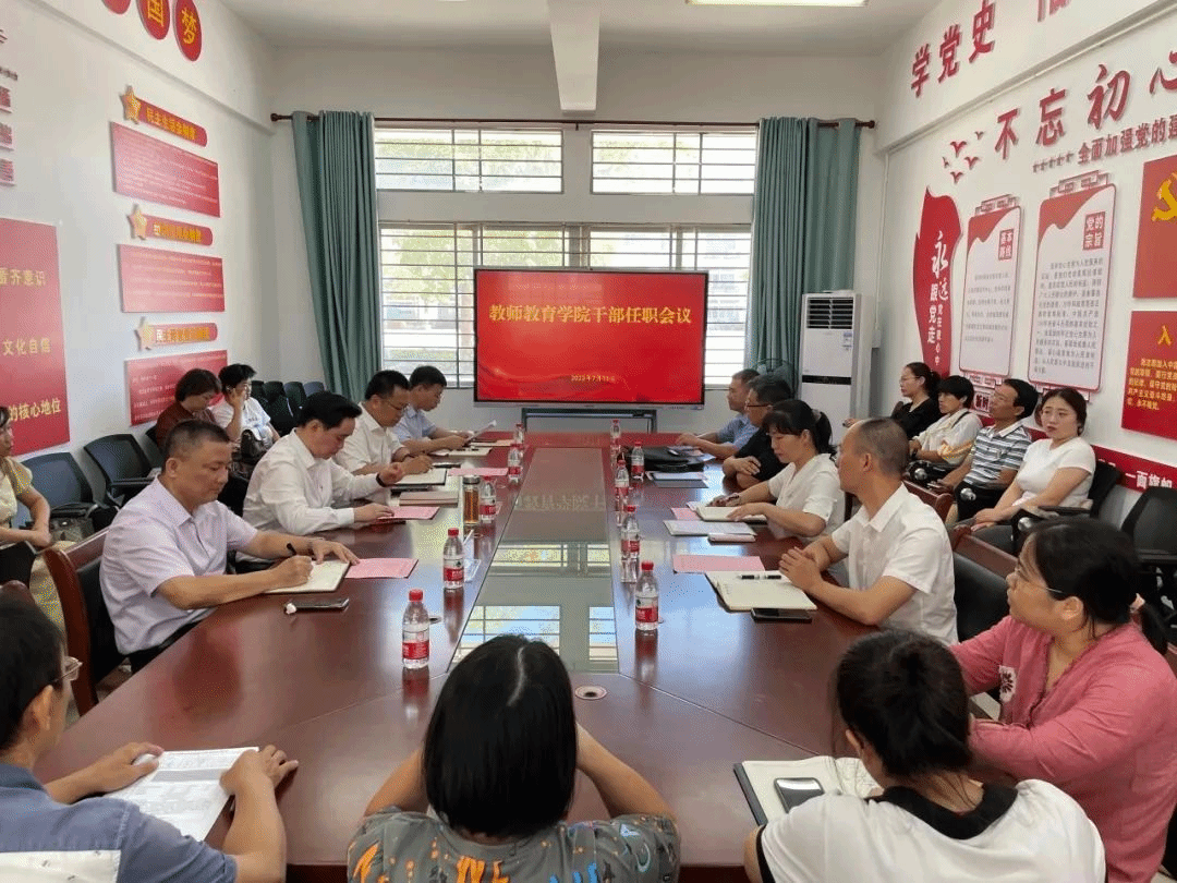 副校长王华、党委委员曾德锦,教师教育学院领导班子成员及学院全体教职工参加会议。